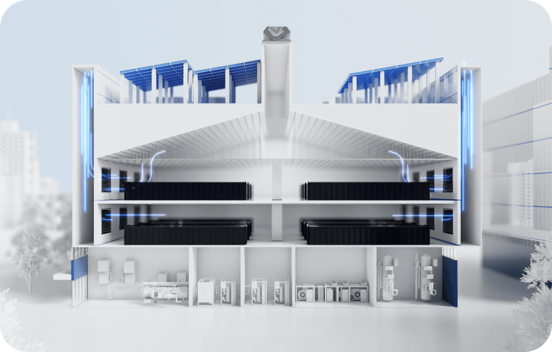 ABSC는 자연대류 기반의 고효율 냉각 시스템으로 전력 소비를 90% 절감하며, 탄소 중립 설계와 ESG 가치를 실현하고 있습니다.